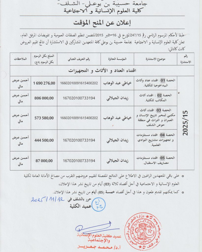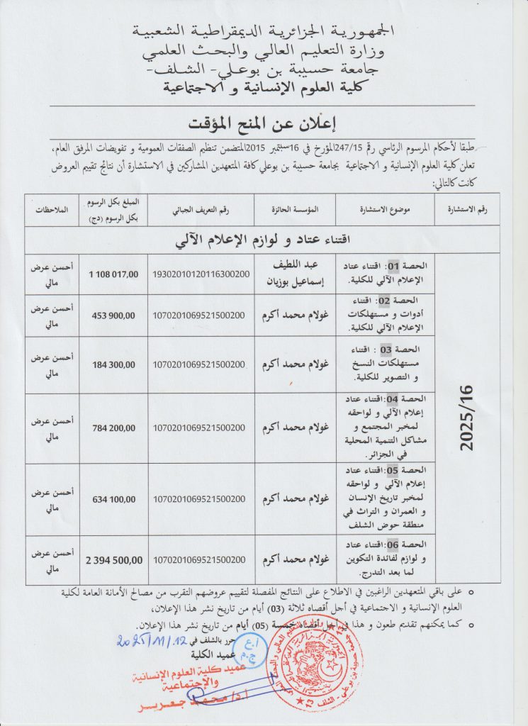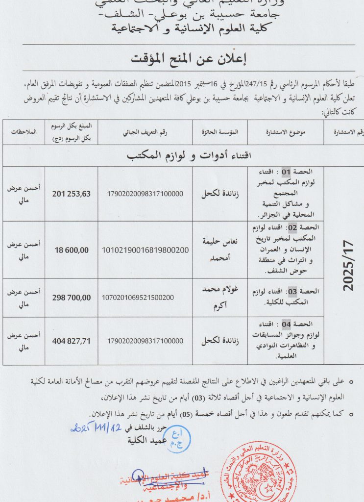 إعلان عن المنح المؤقت للإستشارات رقم 18/19/20 …..2025